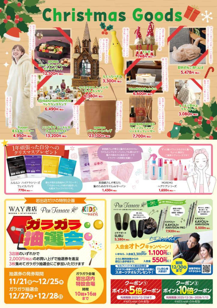 12月25日(木)までの期間に、WAY書店、ペンテラス、KIDS with岩出店のいずれかの店舗にて、