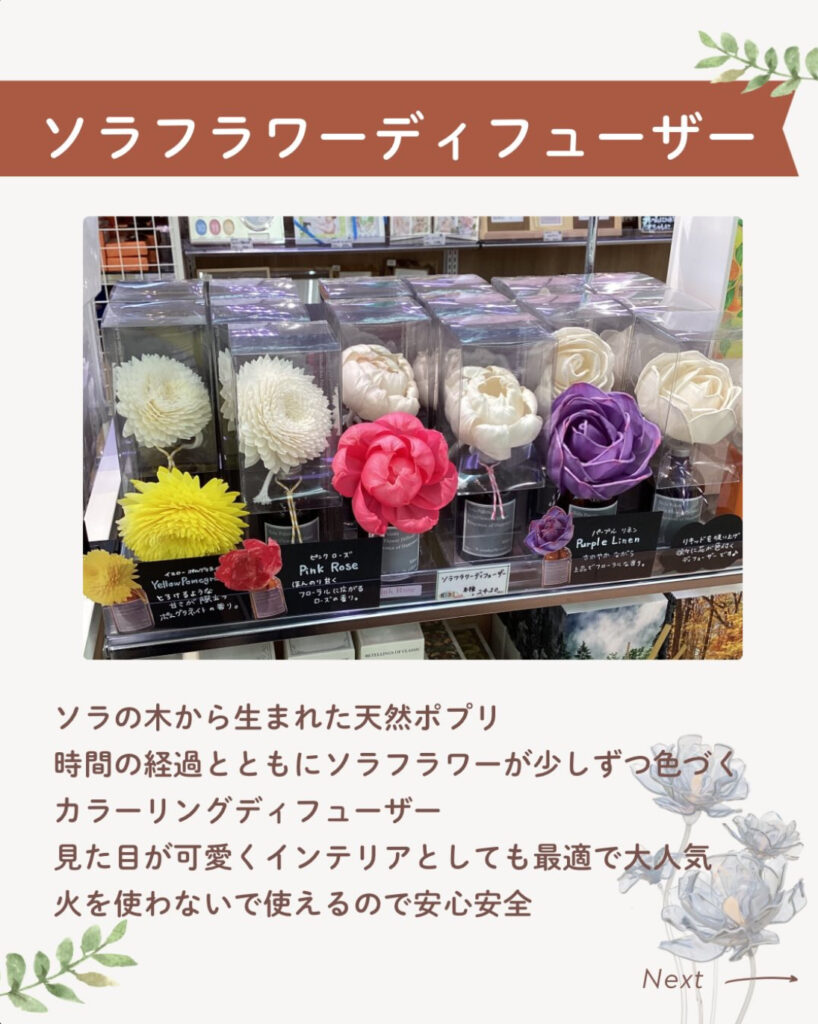 時間の経過と共にソラフラワーが少しずつ色づくカラーリングディフューザー